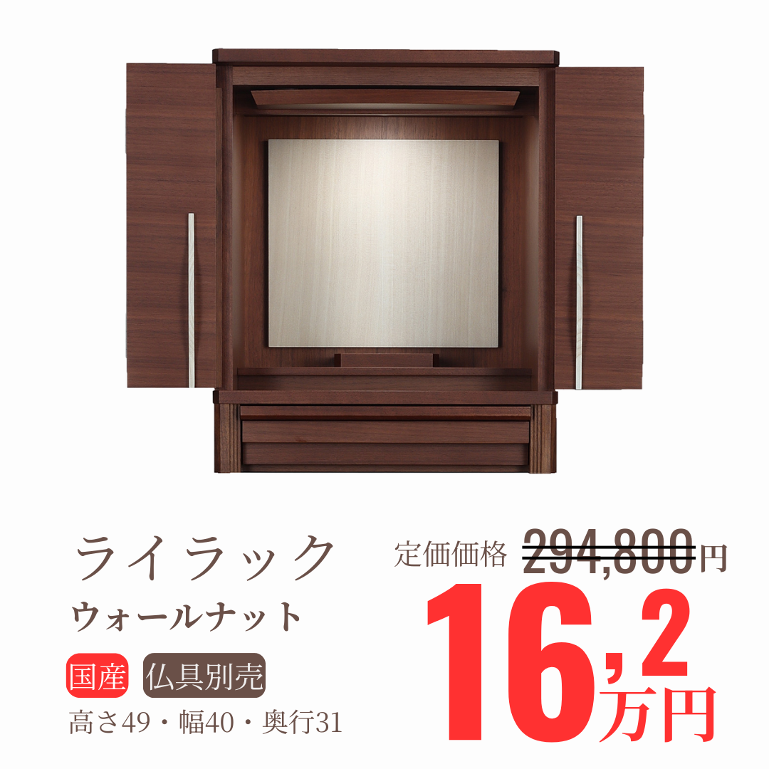 この度、府中まごころ仏壇館展示場にて、新春特別セールを開催いたします。チラシの商品から、当店のイチオシ品をご紹介。目玉の限定3台のモダン仏壇をはじめ、当店ネットショップでは掲載がなく、ご購入いただけない“ご来店限定”ならではの商品をご用意。この機会にぜひご来店のうえ、実際にお確かめください。 ※一部商品は在庫僅少につき、現品限りの場合がございます。※国産表記のないお仏壇は海外製産となります。